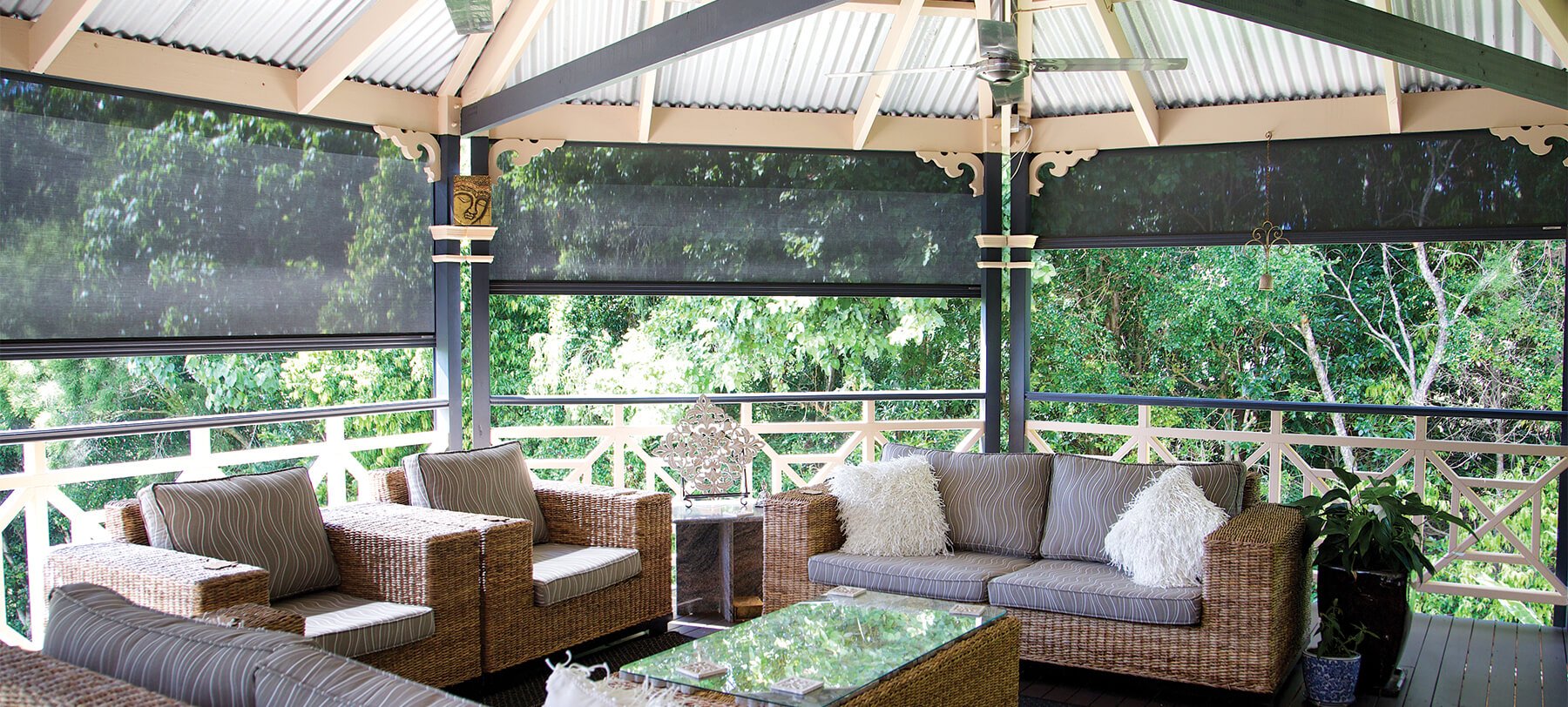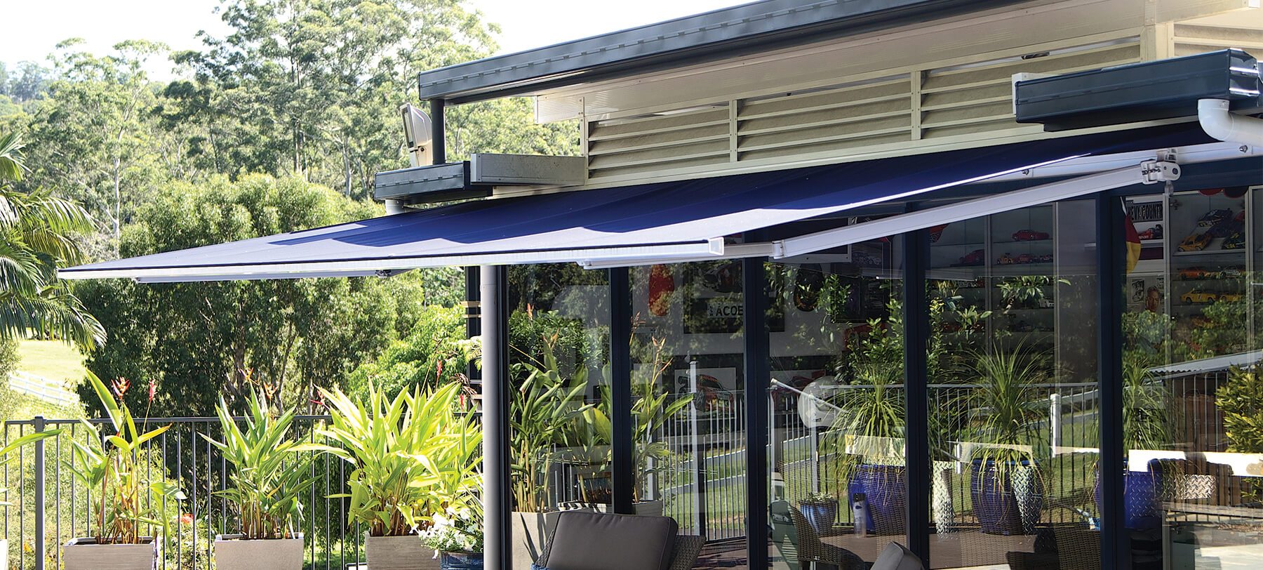 We also have the largest showroom on the Sunshine Coast where you can enjoy a coffee while you view, touch and feel all our products plus see how our motorised blinds and awnings are controlled by the simple push of a button.